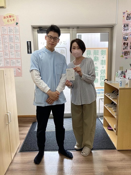 会員の1人の方から4月6日(土)に当院のチラシを貰い「痛くない整体」の文字が目に止まり早速4月8日に当院(からだばらんす)を訪れました。