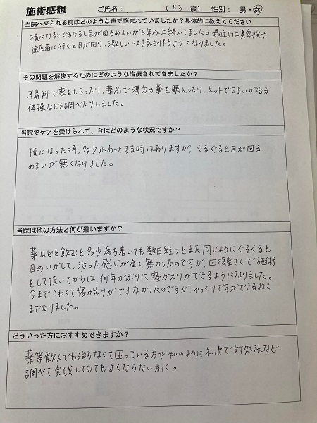 ○50代女性 岡崎市 <めまい、冷え、不眠、胃の不調>