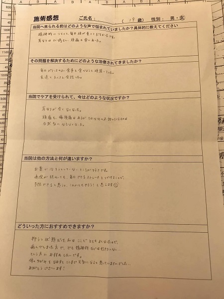 ○40代男性 名古屋市 <腰痛、首、肩のはり>